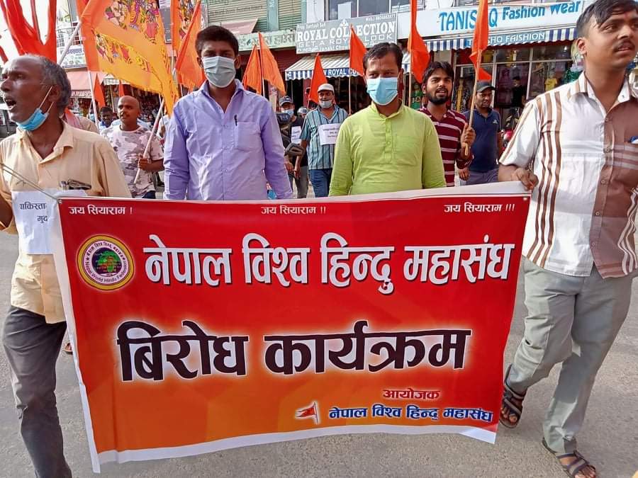 नेपाल विश्व हिन्दु महासंघ द्वारा प्रदेश नं-२ को राजधानी जनकपुर स्थित जनक चौकमा विरोध प्रदर्शन